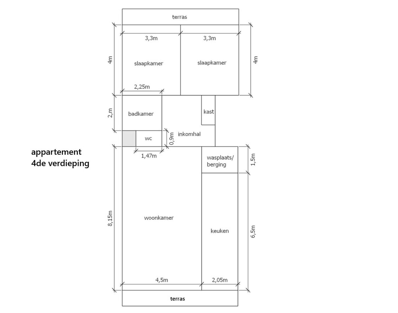 - 4 m², type: Douche in bad
