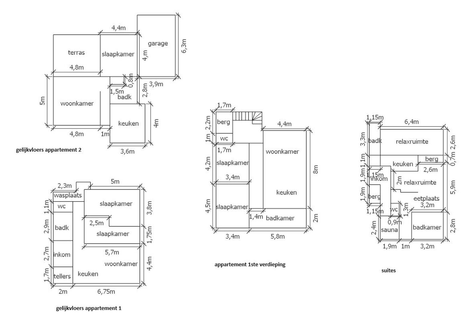 Op het gelijkvloers vindt men 2 units: