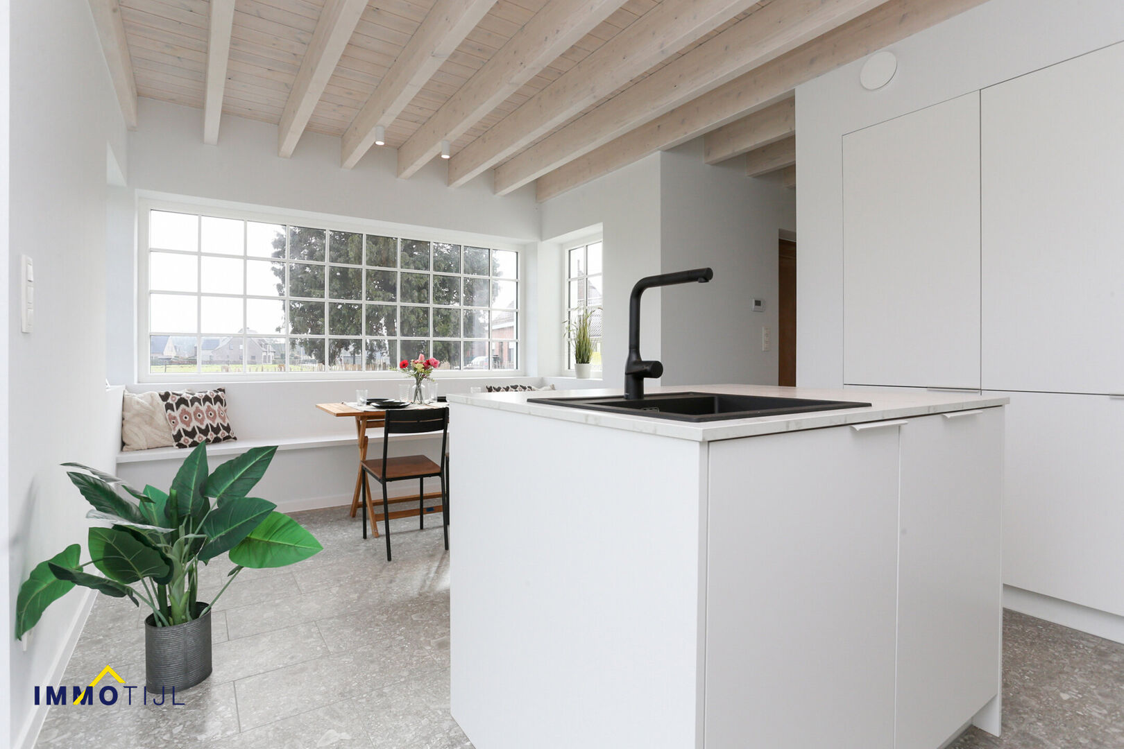 In de zonnige tuin is het bijzonder gezellig vertoeven – omgeven door groen en blik op oneindig. Binnenin ligt de lat inzake afwerking zeer hoog: authentieke balken, zeer duurzame kwaliteitsmaterialen, volledig geschilderd en voorzien van maatkasten. Alvast even binnenkijken? Dat kan via onze virtuele rondleiding: my.matterport.com